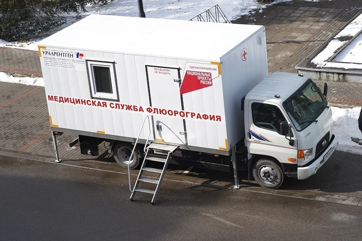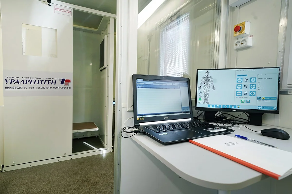 В мобильном рентген-кабинете для Гусева, который стал вторым наряду с имеющимся флюорографом Советского противотуберкулезного диспансера, представлен отечественный цифровой рентгенодиагностический комплекс. В день здесь можно обследовать до 100 человек.